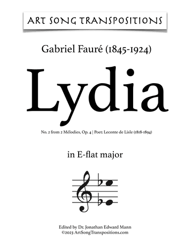 Piano,Vocal,Voice - Digital Download SKU: A0.537665 Composed by Gabriel Faure. Arranged by ArtSongTranspositions.com. Romantic Period. Score. 4 pages. AST Publications, LLC #3479353. Published by AST Publications, LLC (A0.537665). ⇨ PAY $0.00 with INSTITUTIONAL MEMBERSHIP✓ 10,000+ art songs and Baroque aria PDFs✓ Transpose sheet music to any key✓ Free for faculty, students, staff, and employees✓ Campus-wide access via IP authentication✓ Off-campus access via EZproxy or SAML This product was created by a member of ArrangeMe, Hal Leonard's global self-publishing community of independent composers, arrangers, and songwriters. ArrangeMe allows for the publication of unique arrangements of popular titles and original compositions from a variety of voices and backgrounds. The length, difficulty, and retail pricing are determined solely by the discretion of the person who arranged or composed it. About Digital Downloads Digital Downloads are downloadable sheet music files that can be viewed directly on your computer, tablet or mobile device. Once you download your digital sheet music, you can view and print it at home, school, or anywhere you want to make music, and you don’t have to be connected to the internet. Just purchase, download and play! PLEASE NOTE: Your Digital Download will have a watermark at the bottom of each page that will include your name, purchase date and number of copies purchased. You are only authorized to print the number of copies that you have purchased. You may not digitally distribute or print more copies than purchased for use (i.e., you may not print or digitally distribute individual copies to friends or students).