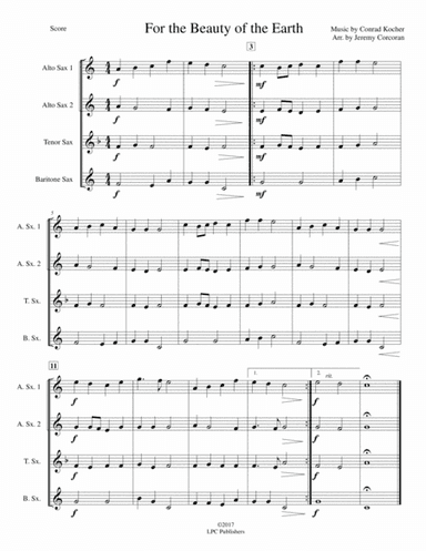 Woodwind Ensemble,Woodwind Quartet Alto Saxophone,Baritone Saxophone,Soprano Saxophone,Tenor Saxophone - Level 4 - Digital Download SKU: A0.737660 Composed by Conrad Kocher. Arranged by Ian Wei. Christian,Holiday. 8 pages. Ian Wei #4350179. Published by Ian Wei (A0.737660). A traditional hymn arranged for saxophone quartet (soprano, alto, tenor, and baritone) performance. This product was created by a member of ArrangeMe, Hal Leonard’s global self-publishing community of independent composers, arrangers, and songwriters. ArrangeMe allows for the publication of unique arrangements of both popular titles and original compositions from a wide variety of voices and backgrounds. About Digital Downloads Digital Downloads are downloadable sheet music files that can be viewed directly on your computer, tablet or mobile device. Once you download your digital sheet music, you can view and print it at home, school, or anywhere you want to make music, and you don’t have to be connected to the internet. Just purchase, download and play! PLEASE NOTE: Your Digital Download will have a watermark at the bottom of each page that will include your name, purchase date and number of copies purchased. You are only authorized to print the number of copies that you have purchased. You may not digitally distribute or print more copies than purchased for use (i.e., you may not print or digitally distribute individual copies to friends or students).