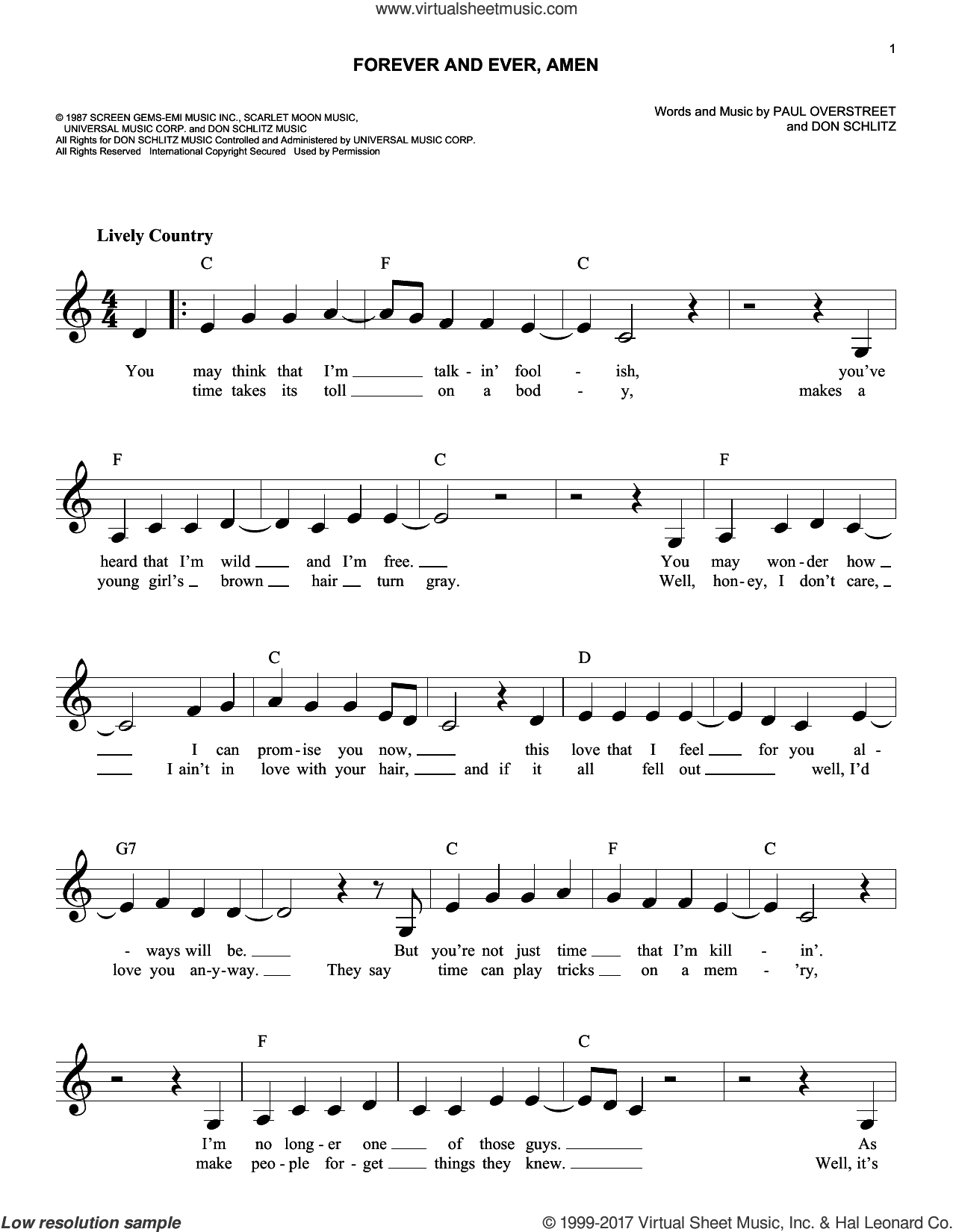 Digital sheet music for voice and other instruments, fake book, (easy)NOTE: Chords, lead sheet and lyrics included.Publisher: Hal LeonardContributors to this music title:Don Schlitz (writer)Paul Overstreet (writer)This item includes: PDF (digital sheet music to download and print)Instrumentation:voice and other instruments (fake book)Format:digital sheet music, ezfkbkSkill Level:easyGenre:country, love, oldies, pop, rock, standards, wedding, broadway, gospel, festival, childrenPages:3