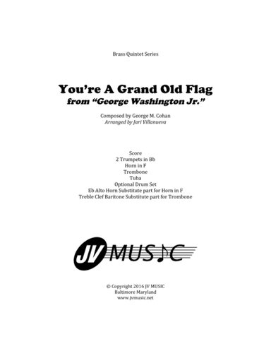 Concert Band - Digital Download SKU: A0.722782 Composed by George M. Cohan. Arranged by Jari A. Villanueva. Broadway,Folk,Holiday,Patriotic. Score and parts. 76 pages. JV MUSIC #4359897. Published by JV MUSIC (A0.722782). Four Cohan Songs for Concert BandBy George M. Cohan Arranged by Jari VillanuevaA Medley of Give My Regards to Broadway, Yankee Doodle Dandy, Over There, You’re a Grand Old Flaghttps://youtu.be/POlGOhVKcy0Full Score and PartsArranged in a march style by Jari Villanueva, Four Cohan Songs is very playable and perfect for summer concerts.This arrangement was performed by the US Air Force Band for years at ceremonies and patriotic openings. This product was created by a member of ArrangeMe, Hal Leonard's global self-publishing community of independent composers, arrangers, and songwriters. ArrangeMe allows for the publication of unique arrangements of popular titles and original compositions from a variety of voices and backgrounds. The length, difficulty, and retail pricing are determined solely by the discretion of the person who arranged or composed it. About Digital Downloads Digital Downloads are downloadable sheet music files that can be viewed directly on your computer, tablet or mobile device. Once you download your digital sheet music, you can view and print it at home, school, or anywhere you want to make music, and you don’t have to be connected to the internet. Just purchase, download and play! PLEASE NOTE: Your Digital Download will have a watermark at the bottom of each page that will include your name, purchase date and number of copies purchased. You are only authorized to print the number of copies that you have purchased. You may not digitally distribute or print more copies than purchased for use (i.e., you may not print or digitally distribute individual copies to friends or students).