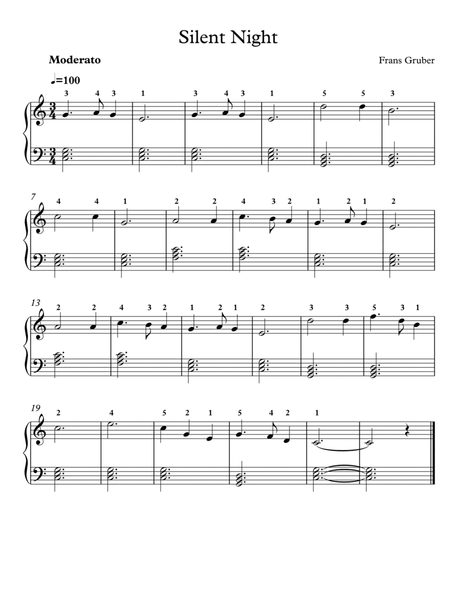 Franz gruber Silent Night Easy Piano sheet music Fingered (arr. Arezzo Music)