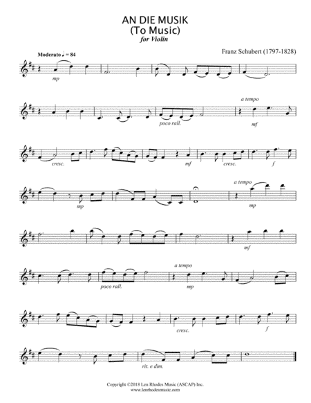 Franz Schubert - "An Die Musik" (to Music), for solo (unaccompanied) Violin (arr. Len Rhodes)