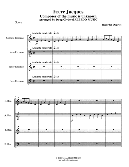 Frere Jacques for Recorder Quartet (arr. Doug Clyde)