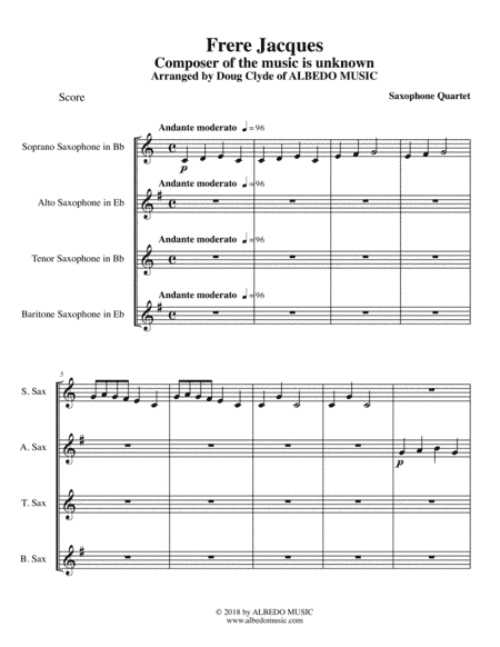 Frere Jacques for Saxophone Quartet (arr. Doug Clyde)