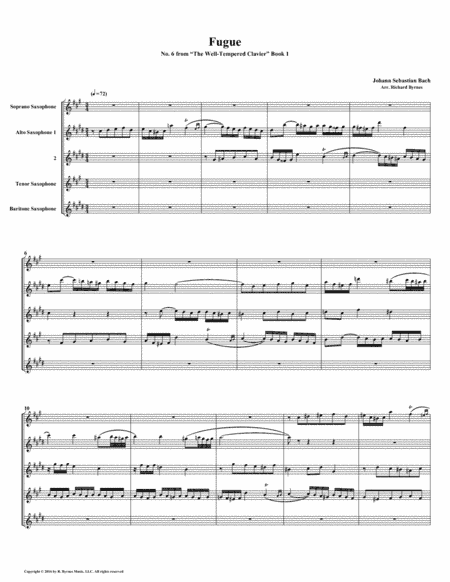 Fugue 06 from Well-Tempered Clavier, Book 1 (Saxophone Quintet) (arr. Richard Byrnes)