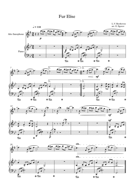 Fur Elise, Ludwig Van Beethoven, For Alto Saxophone & Piano (arr. Eugene Egorov)