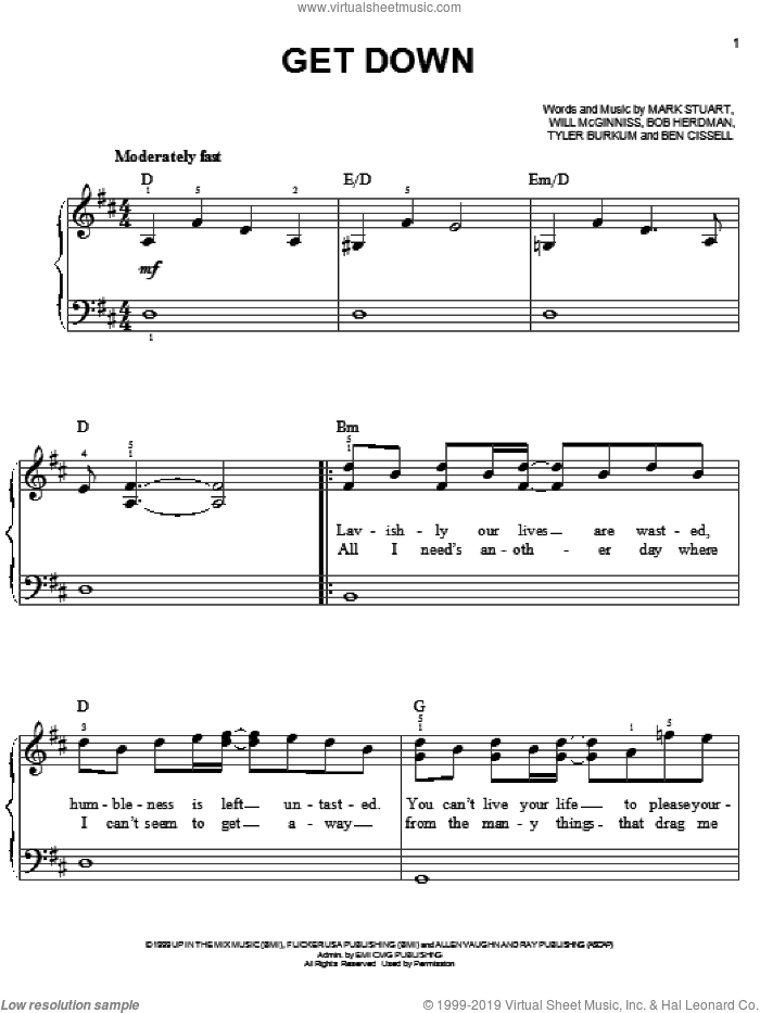 Digital sheet music for pianoNOTE: chords indications, lyrics may be included (please, check the first page above before to buy this item to see what's included)Publisher: Hal LeonardContributors to this music title:Ben Cissell (writer)Bob Herman (writer)Mark Stuart (writer)Tyler Burkum (writer)Will McGinniss (writer)This item includes: PDF (digital sheet music to download and print), Interactive Sheet Music (for online playback, transposition and printing). You can transpose this music in any key.Instrumentation:piano soloSkill Level:easyGenre:christian, pop, rock, childrenPages:5