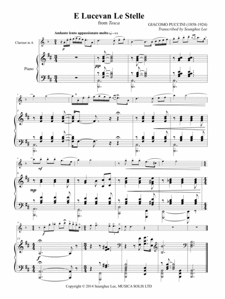 Giacomo Puccini: Tosca E Lucevan Le Stelle for Clarinet and Piano (arr. Seunghee Lee)