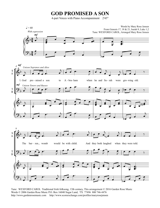is in the public domain. traditional irish., mary rose jensen, tune, wexford carol