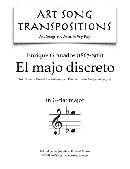 GRANADOS: El majo discreto (transposed to G-flat major) (arr. ArtSongTranspositions.com)