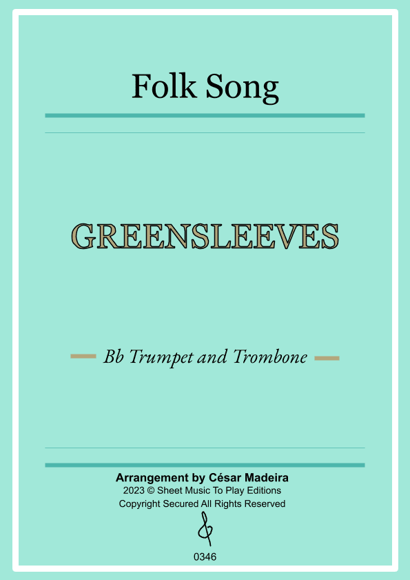 Greensleeves - Bb Trumpet and Trombone - W/Chords (Full Score and Parts) (arr. César Madeira)