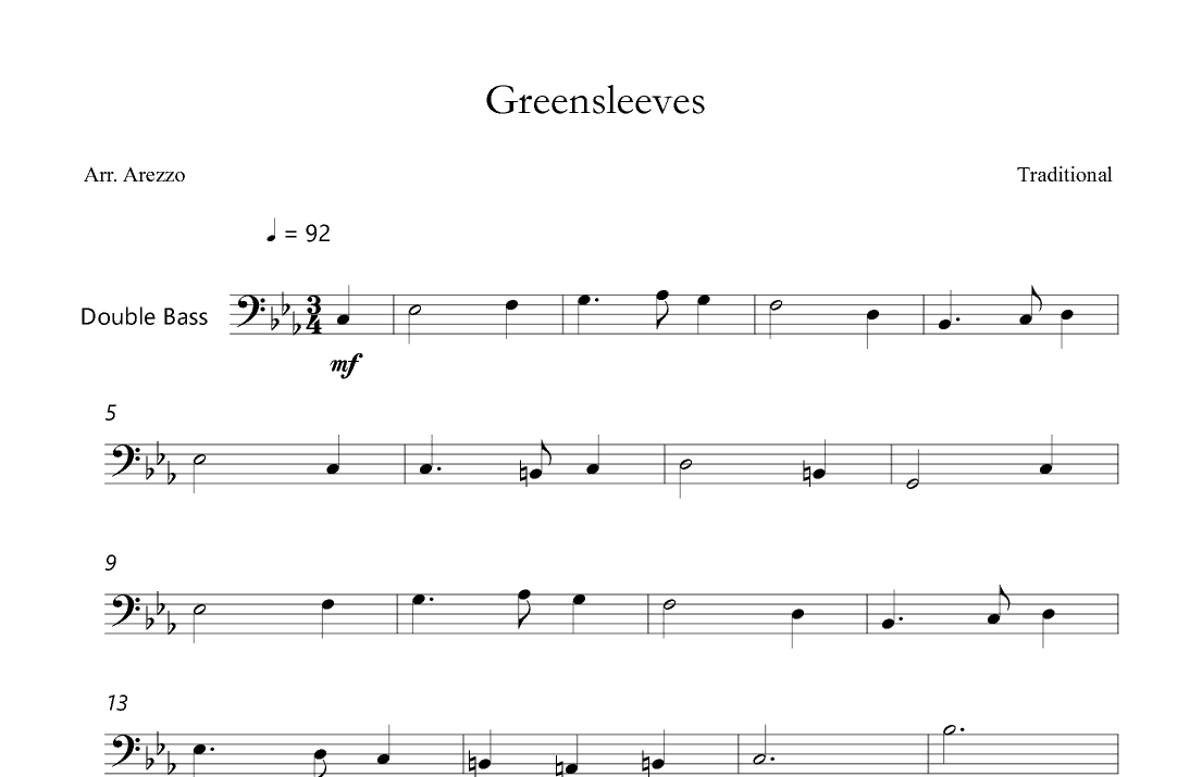 Greensleeves - Lead Sheet for Double Bass  (arr. Arezzo Music)