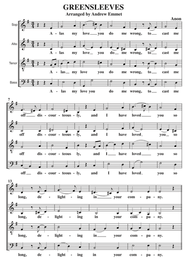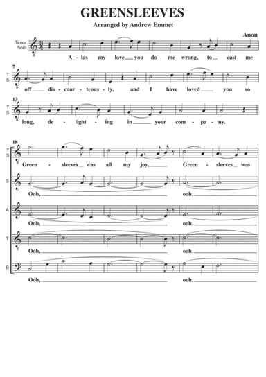 Choral Choir (SATB) - Level 3 - Digital Download SKU: A0.1002441 Composed by Traditional. Arranged by Elzbieta Ambrose. A Cappella. Octavo. 5 pages. Elizabeth (Elzbieta) Ambrose #6415563. Published by Elizabeth (Elzbieta) Ambrose (A0.1002441). Greensleeves, the traditional English song, dates to time of Henry VIII.This arrangement, with the original lyrics, will make a valuable addition to any choir’s repertory, an ensemble or a quarter of confident singers. The line of every voice makes a tune of its own; is memorable and sits well within the range of each voice. The melody line appears in different voices to give the varied tone to the performance and to reflect the words. Time of the performance is approximately 2 min 30 sec. The arrangement for SATB and piano is also available.   This product was created by a member of ArrangeMe, Hal Leonard’s global self-publishing community of independent composers, arrangers, and songwriters. ArrangeMe allows for the publication of unique arrangements of both popular titles and original compositions from a wide variety of voices and backgrounds. About Digital Downloads Digital Downloads are downloadable sheet music files that can be viewed directly on your computer, tablet or mobile device. Once you download your digital sheet music, you can view and print it at home, school, or anywhere you want to make music, and you don’t have to be connected to the internet. Just purchase, download and play! PLEASE NOTE: Your Digital Download will have a watermark at the bottom of each page that will include your name, purchase date and number of copies purchased. You are only authorized to print the number of copies that you have purchased. You may not digitally distribute or print more copies than purchased for use (i.e., you may not print or digitally distribute individual copies to friends or students).