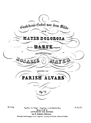 Harp - Level 3 - Digital Download SKU: A0.877626 Composed by Elias Parish Alvars. Instructional. Score. 5 pages. Amadeus Arte Editions #62401. Published by Amadeus Arte Editions (A0.877626). A beautiful Romance by Parish Alvars, defined by Berlioz as The Liszt of the Harp inspired by this poem: Wherever I go, How it aches, how it aches, how it aches Here in my heart, Scarcely am I alone, I weep, I weep, I weep, Within me the heart breaks. This product was created by a member of ArrangeMe, Hal Leonard’s global self-publishing community of independent composers, arrangers, and songwriters. ArrangeMe allows for the publication of unique arrangements of both popular titles and original compositions from a wide variety of voices and backgrounds. About Digital Downloads Digital Downloads are downloadable sheet music files that can be viewed directly on your computer, tablet or mobile device. Once you download your digital sheet music, you can view and print it at home, school, or anywhere you want to make music, and you don’t have to be connected to the internet. Just purchase, download and play! PLEASE NOTE: Your Digital Download will have a watermark at the bottom of each page that will include your name, purchase date and number of copies purchased. You are only authorized to print the number of copies that you have purchased. You may not digitally distribute or print more copies than purchased for use (i.e., you may not print or digitally distribute individual copies to friends or students).