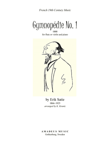 Acoustic Guitar,Instrumental Solo,Piano - Level 3 - Digital Download SKU: A0.532602 Composed by E. Satie. Arranged by Klas Krantz. 19th Century,Classical,Romantic Period. Score and individual part. 4 pages. Amadeus Music #6567013. Published by Amadeus Music (A0.532602). Erik Satie (1866 – 1925), was a French composer and pianist. Satie was an influential artist in the late 19th- and early 20th-century Parisian avant-garde. His work was a precursor to later artistic movements such as minimalism, repetitive music, and the Theatre of the Absurd. This product was created by a member of ArrangeMe, Hal Leonard’s global self-publishing community of independent composers, arrangers, and songwriters. ArrangeMe allows for the publication of unique arrangements of both popular titles and original compositions from a wide variety of voices and backgrounds. About Digital Downloads Digital Downloads are downloadable sheet music files that can be viewed directly on your computer, tablet or mobile device. Once you download your digital sheet music, you can view and print it at home, school, or anywhere you want to make music, and you don’t have to be connected to the internet. Just purchase, download and play! PLEASE NOTE: Your Digital Download will have a watermark at the bottom of each page that will include your name, purchase date and number of copies purchased. You are only authorized to print the number of copies that you have purchased. You may not digitally distribute or print more copies than purchased for use (i.e., you may not print or digitally distribute individual copies to friends or students).