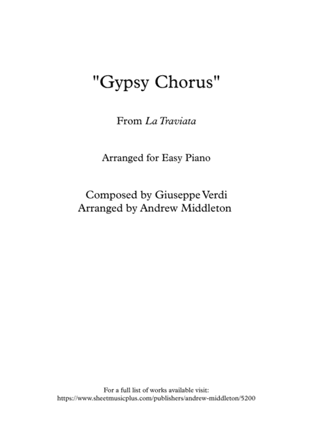 Gypsy Chorus arranged for Easy Piano (arr. Andrew Middleton)