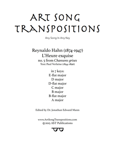 HAHN: L'heure exquise (transposed to A major) (arr. ArtSongTranspositions.com)