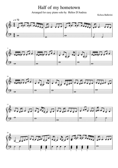 Piano Solo - Level 1 - Digital Download SKU: A0.981576 By Kelsea Ballerini. By Jimmy Robbins, Kelsea Ballerini, Nicolle Galyon, Ross Copperman, Shane Mc Anally, and Shane McAnally. Arranged by Helios D'Andrea. Contemporary. Score. 3 pages. D'Andrea Helios #6795283. Published by D'Andrea Helios (A0.981576). C major  Easy piano . This product was created by a member of ArrangeMe, Hal Leonard's global self-publishing community of independent composers, arrangers, and songwriters. ArrangeMe allows for the publication of unique arrangements of popular titles and original compositions from a variety of voices and backgrounds. The length, difficulty, and retail pricing are determined solely by the discretion of the person who arranged or composed it. About Digital Downloads Digital Downloads are downloadable sheet music files that can be viewed directly on your computer, tablet or mobile device. Once you download your digital sheet music, you can view and print it at home, school, or anywhere you want to make music, and you don’t have to be connected to the internet. Just purchase, download and play! PLEASE NOTE: Your Digital Download will have a watermark at the bottom of each page that will include your name, purchase date and number of copies purchased. You are only authorized to print the number of copies that you have purchased. You may not digitally distribute or print more copies than purchased for use (i.e., you may not print or digitally distribute individual copies to friends or students).