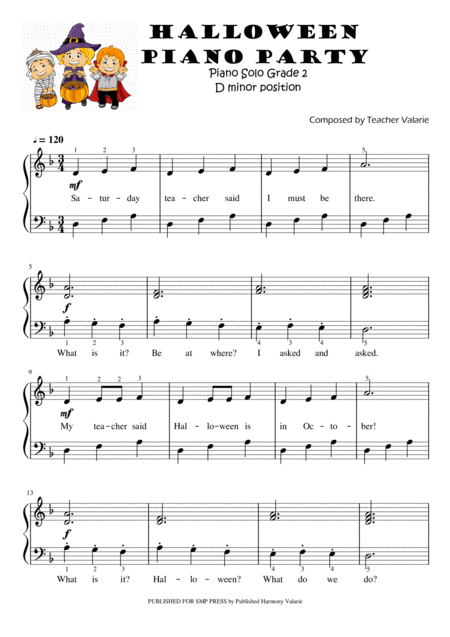 Halloween Piano Party (Piano Solo for Grade 2) 5-finger position on D