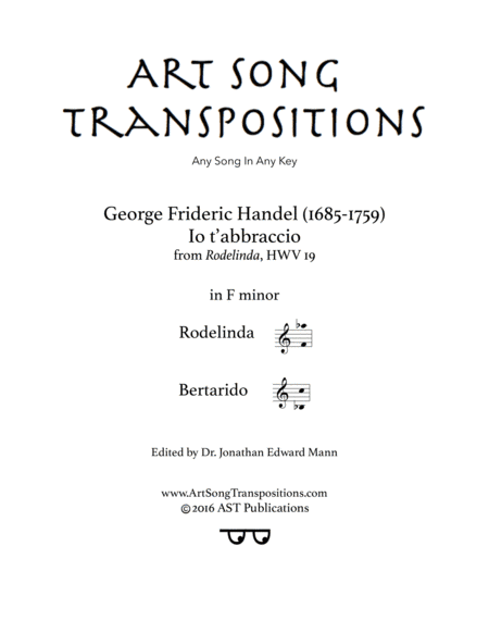 HANDEL: Io t'abbraccio (transposed to F minor) (arr. ArtSongTranspositions.com)