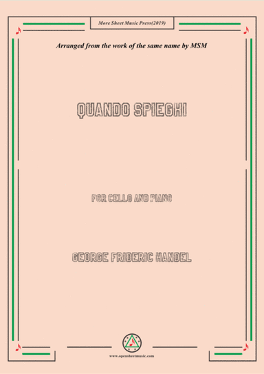 Cello,Piano - Level 3 - Digital Download SKU: A0.671382 Composed by George Frideric Handel. Arranged by MSM. Classical,Romantic Period. Score and part. 10 pages. Open Cloud #4800870. Published by Open Cloud (A0.671382). This product(include full and parts score) is a digital sheet music in PDF format. The music was composed by Handel (George Frideric Handel), 1685-1759, arrange by MSM Press, for Cello and Piano. This product was created by a member of ArrangeMe, Hal Leonard’s global self-publishing community of independent composers, arrangers, and songwriters. ArrangeMe allows for the publication of unique arrangements of both popular titles and original compositions from a wide variety of voices and backgrounds. About Digital Downloads Digital Downloads are downloadable sheet music files that can be viewed directly on your computer, tablet or mobile device. Once you download your digital sheet music, you can view and print it at home, school, or anywhere you want to make music, and you don’t have to be connected to the internet. Just purchase, download and play! PLEASE NOTE: Your Digital Download will have a watermark at the bottom of each page that will include your name, purchase date and number of copies purchased. You are only authorized to print the number of copies that you have purchased. You may not digitally distribute or print more copies than purchased for use (i.e., you may not print or digitally distribute individual copies to friends or students).