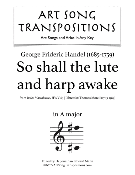 HANDEL: So shall the lute and harp awake (transposed to A major) (arr. ArtSongTranspositions.com)