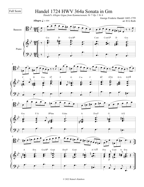 Handel's Gigue or Tarantela For Bassoon Solo (arr. R G Roth)