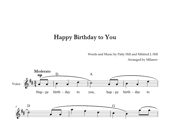 Happy Birthday to You in D Lead Sheet (arr. Milanov)
