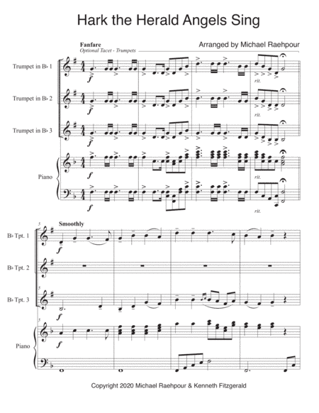 Hark the Herald Angel Sings - Trumpet Trio (With Piano) (arr. Michael Raehpour)
