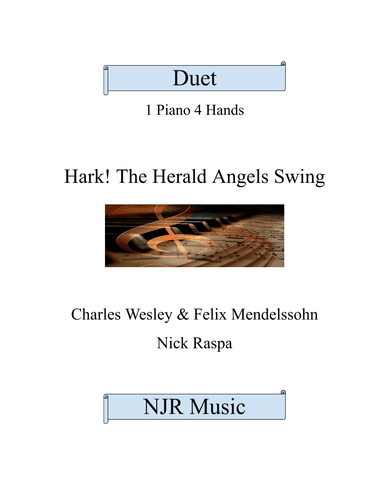 1 Piano,4 Hands,Piano Duet - Level 4 - Digital Download SKU: A0.754412 Composed by Charles Wesley, Felix Mendelssohn. Arranged by Nick Raspa. Christmas,Holiday,Jazz. Score. 16 pages. NJR Music #4628355. Published by NJR Music (A0.754412). This is a laid back swing version, set for 1 piano 4 hands and is for the advanced intermediate to advanced level pianist. The score and parts are included. ASCAP. This product was created by a member of ArrangeMe, Hal Leonard's global self-publishing community of independent composers, arrangers, and songwriters. ArrangeMe allows for the publication of unique arrangements of popular titles and original compositions from a variety of voices and backgrounds. The length, difficulty, and retail pricing are determined solely by the discretion of the person who arranged or composed it. About Digital Downloads Digital Downloads are downloadable sheet music files that can be viewed directly on your computer, tablet or mobile device. Once you download your digital sheet music, you can view and print it at home, school, or anywhere you want to make music, and you don’t have to be connected to the internet. Just purchase, download and play! PLEASE NOTE: Your Digital Download will have a watermark at the bottom of each page that will include your name, purchase date and number of copies purchased. You are only authorized to print the number of copies that you have purchased. You may not digitally distribute or print more copies than purchased for use (i.e., you may not print or digitally distribute individual copies to friends or students).