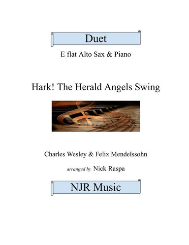 Alto Saxophone,Piano - Level 4 - Digital Download SKU: A0.754495 Composed by Charles Wesley, Felix Mendelssohn. Arranged by Nick Raspa. Christmas,Holiday,Jazz. Score and part. 12 pages. NJR Music #5754707. Published by NJR Music (A0.754495). This arrangement of "Hark! The Herald Angels Swing" is for advanced intermediate Alto Sax & Piano. Contains the full score and set of parts. There is a piano backing track available at:Sheet Music Plus https://www.sheetmusicplus.com/title/hark-the-herald-angels-swing-piano-backing-track-digital-sheet-music/21778832?ac=1 ASCAP. This product was created by a member of ArrangeMe, Hal Leonard’s global self-publishing community of independent composers, arrangers, and songwriters. ArrangeMe allows for the publication of unique arrangements of both popular titles and original compositions from a wide variety of voices and backgrounds. About Digital Downloads Digital Downloads are downloadable sheet music files that can be viewed directly on your computer, tablet or mobile device. Once you download your digital sheet music, you can view and print it at home, school, or anywhere you want to make music, and you don’t have to be connected to the internet. Just purchase, download and play! PLEASE NOTE: Your Digital Download will have a watermark at the bottom of each page that will include your name, purchase date and number of copies purchased. You are only authorized to print the number of copies that you have purchased. You may not digitally distribute or print more copies than purchased for use (i.e., you may not print or digitally distribute individual copies to friends or students).