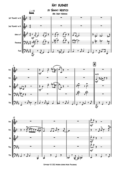 Jazz Ensemble plus F horns 2 & tuba - Grade 3 SKU: KN.2370 Composed by Sammy Nestico. Jazz Journey Series. Swing. Score and set of parts. Kendor Music Inc #2370. Published by Kendor Music Inc (KN.2370). UPC: 822795023701.From the Basie-Straight Ahead recording of 1968 featuring the legendary Count Basie, Harold Jones, Grover Mitchell, Marshall Royal and Freddie Green, highlights here include a recurring alto/trumpet duet, a sax section soli, trumpet plungers, piano solos, and an ensemble shout to take it all home. Rhythm section parts are partially notated with chords cued.