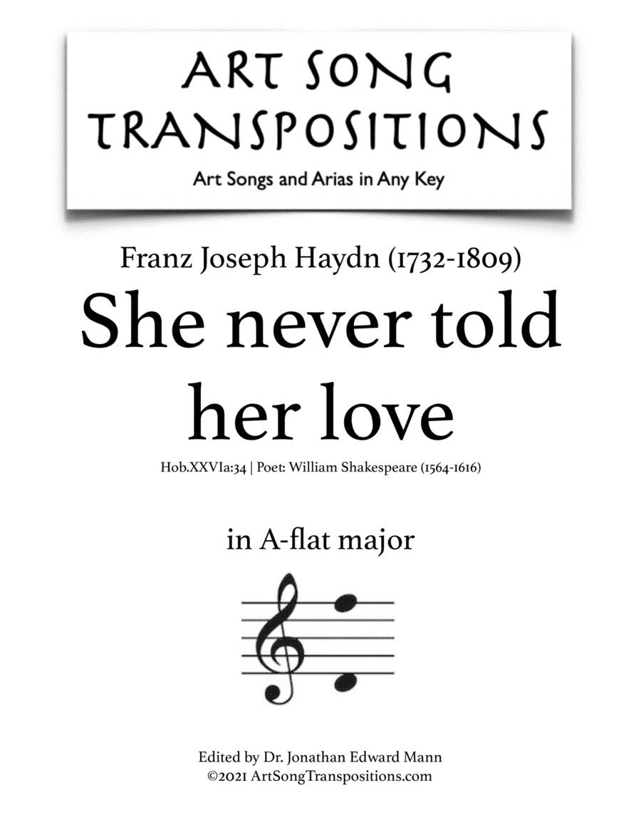 HAYDN: She never told her love (transposed to A-flat major) (arr. ArtSongTranspositions.com)