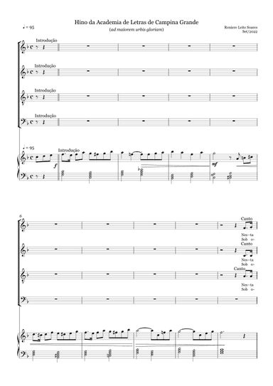 Piano Solo - Level 1 - Digital Download SKU: A0.1103167 By Roniere Leite Soares. By Roniere Leite Soares. Arranged by Roniere Leite Soares. 20th Century,Contemporary,Instructional,Patriotic,Traditional. Score. 9 pages. Roniere Leite Soares #706475. Published by Roniere Leite Soares (A0.1103167). Hino doada à Academia de Letras de Campina Grande (Paraíba), Brasil. This product was created by a member of ArrangeMe, Hal Leonard’s global self-publishing community of independent composers, arrangers, and songwriters. ArrangeMe allows for the publication of unique arrangements of both popular titles and original compositions from a wide variety of voices and backgrounds. About Digital Downloads Digital Downloads are downloadable sheet music files that can be viewed directly on your computer, tablet or mobile device. Once you download your digital sheet music, you can view and print it at home, school, or anywhere you want to make music, and you don’t have to be connected to the internet. Just purchase, download and play! PLEASE NOTE: Your Digital Download will have a watermark at the bottom of each page that will include your name, purchase date and number of copies purchased. You are only authorized to print the number of copies that you have purchased. You may not digitally distribute or print more copies than purchased for use (i.e., you may not print or digitally distribute individual copies to friends or students).