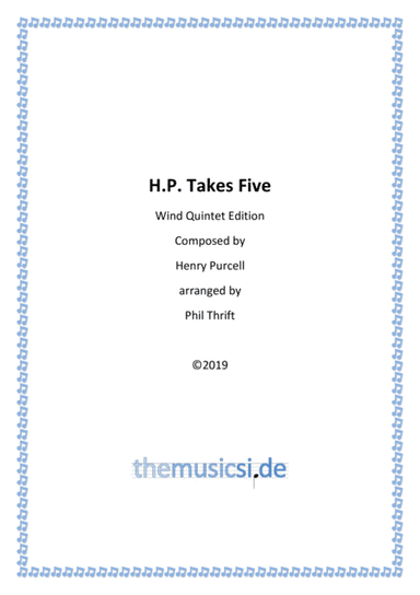 Woodwind Ensemble,Woodwind Quintet - Level 4 - Digital Download SKU: A0.955719 Composed by Henry Purcell. Arranged by Phil Thrift. Baroque,Contemporary. 19 pages. Phil Thrift #5314603. Published by Phil Thrift (A0.955719). H.P. Takes Five is a cheeky take on Henry Purcell’s famous trumpet tune. Instead of 4/4 time, it’s in 5/4, with a few 7/4 measures thrown in for a bit more fun! Purcell (1659–95) wrote much incidental music for plays and so-called semi-operas performed in London’s theaters, and often included a trumpet tune as a signal for the next act. A trumpet was the only instrument that could be heard above the noise of the audience! This is the wind quintet adaptation of the arrangement originally written for brass quintet. The lead moves around the parts and so this is indicated to make sure that the appropriate line remains prominent. Pay attention to all the tenuto and staccato marks. Make sure that the ff in measures 26, 42, 52, and at the end are as loud as you can get them without overblowing. The fluid lines of the lyrical middle section will test your powers of concentration. This product was created by a member of ArrangeMe, Hal Leonard’s global self-publishing community of independent composers, arrangers, and songwriters. ArrangeMe allows for the publication of unique arrangements of both popular titles and original compositions from a wide variety of voices and backgrounds. About Digital Downloads Digital Downloads are downloadable sheet music files that can be viewed directly on your computer, tablet or mobile device. Once you download your digital sheet music, you can view and print it at home, school, or anywhere you want to make music, and you don’t have to be connected to the internet. Just purchase, download and play! PLEASE NOTE: Your Digital Download will have a watermark at the bottom of each page that will include your name, purchase date and number of copies purchased. You are only authorized to print the number of copies that you have purchased. You may not digitally distribute or print more copies than purchased for use (i.e., you may not print or digitally distribute individual copies to friends or students).