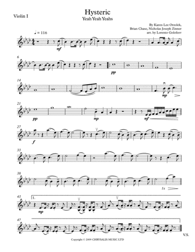String Quartet Cello,String Quartet,Viola,Violin - Level 3 - Digital Download SKU: A0.739346 By Yeah Yeah Yeahs. By Brian Chase, Karen Lee Orzolek, and Nicholas Joseph Zinner. Arranged by Alex Talanov. Contemporary. Score and parts. 13 pages. Alex Talanov #3908983. Published by Alex Talanov (A0.739346). This wonderful song is now available for string quartet. This product was created by a member of ArrangeMe, Hal Leonard's global self-publishing community of independent composers, arrangers, and songwriters. ArrangeMe allows for the publication of unique arrangements of popular titles and original compositions from a variety of voices and backgrounds. The length, difficulty, and retail pricing are determined solely by the discretion of the person who arranged or composed it. About Digital Downloads Digital Downloads are downloadable sheet music files that can be viewed directly on your computer, tablet or mobile device. Once you download your digital sheet music, you can view and print it at home, school, or anywhere you want to make music, and you don’t have to be connected to the internet. Just purchase, download and play! PLEASE NOTE: Your Digital Download will have a watermark at the bottom of each page that will include your name, purchase date and number of copies purchased. You are only authorized to print the number of copies that you have purchased. You may not digitally distribute or print more copies than purchased for use (i.e., you may not print or digitally distribute individual copies to friends or students).