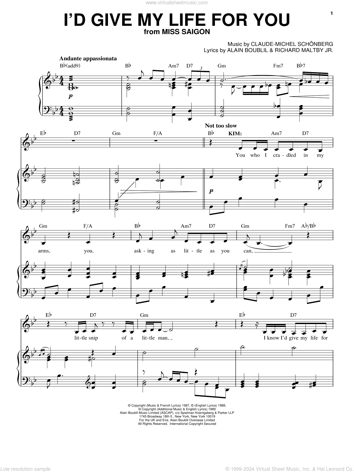 Digital sheet music for voice and pianoNOTE: chords and lyrics included.Publisher: Hal LeonardContributors to this music title:Claude-Michel Schonberg (writer)Claude-Michel Schonberg (writer)Richard Maltby, Jr. (writer)This item includes: PDF (digital sheet music to download and print), Interactive Sheet Music (for online playback, transposition and printing). You can transpose this music in any key.Instrumentation:voice and pianoSkill Level:intermediateGenre:musical/show, broadwayPages:6