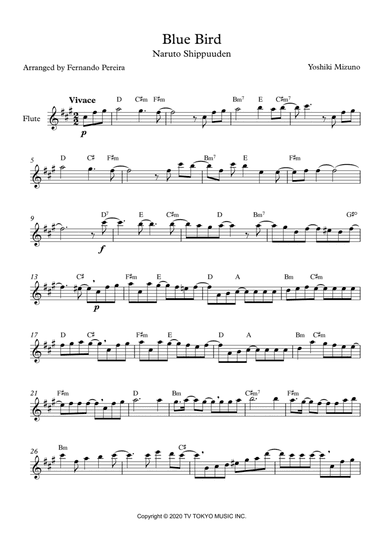 Guitar - Level 5 - Digital Download SKU: A0.1288566 Composed by Yoshiki Mizuno. Arranged by Pavlo Pakshyn. Film/TV,Multicultural,Pop,Video Game,World. Guitar Tab. 4 pages. Pavlo Pakshyn #879521. Published by Pavlo Pakshyn (A0.1288566). Amazing song from Anime "Naruto", this level is very difficult, see carefully if you can play it. You can see how I play it on my channel! Good luck! This product was created by a member of ArrangeMe, Hal Leonard’s global self-publishing community of independent composers, arrangers, and songwriters. ArrangeMe allows for the publication of unique arrangements of both popular titles and original compositions from a wide variety of voices and backgrounds. About Digital Downloads Digital Downloads are downloadable sheet music files that can be viewed directly on your computer, tablet or mobile device. Once you download your digital sheet music, you can view and print it at home, school, or anywhere you want to make music, and you don’t have to be connected to the internet. Just purchase, download and play! PLEASE NOTE: Your Digital Download will have a watermark at the bottom of each page that will include your name, purchase date and number of copies purchased. You are only authorized to print the number of copies that you have purchased. You may not digitally distribute or print more copies than purchased for use (i.e., you may not print or digitally distribute individual copies to friends or students).