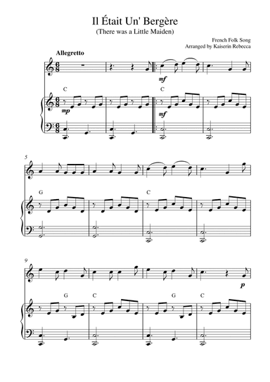 Oboe,Piano - Level 2 - Digital Download SKU: A0.1106297 Composed by French Folk Song. Arranged by Kaiserin Rebecca. Children,Folk,Instructional,Traditional. Score and part. 2 pages. Kaiserin Rebecca #709415. Published by Kaiserin Rebecca (A0.1106297). For oboe solo and piano accompaniment with chords. Key: C major Duration: 1'20. This product was created by a member of ArrangeMe, Hal Leonard’s global self-publishing community of independent composers, arrangers, and songwriters. ArrangeMe allows for the publication of unique arrangements of both popular titles and original compositions from a wide variety of voices and backgrounds. About Digital Downloads Digital Downloads are downloadable sheet music files that can be viewed directly on your computer, tablet or mobile device. Once you download your digital sheet music, you can view and print it at home, school, or anywhere you want to make music, and you don’t have to be connected to the internet. Just purchase, download and play! PLEASE NOTE: Your Digital Download will have a watermark at the bottom of each page that will include your name, purchase date and number of copies purchased. You are only authorized to print the number of copies that you have purchased. You may not digitally distribute or print more copies than purchased for use (i.e., you may not print or digitally distribute individual copies to friends or students).