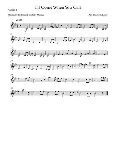 String Quartet String Quartet - Level 1 - Digital Download SKU: A0.888093 By Ruby Murray. By David Caryll and Josephine Caryll. Arranged by Elizabeth Lister. Contemporary. Score and parts. 4 pages. Elizabeth Lister #4414293. Published by Elizabeth Lister (A0.888093). This product was created by a member of ArrangeMe, Hal Leonard’s global self-publishing community of independent composers, arrangers, and songwriters. ArrangeMe allows for the publication of unique arrangements of both popular titles and original compositions from a wide variety of voices and backgrounds. About Digital Downloads Digital Downloads are downloadable sheet music files that can be viewed directly on your computer, tablet or mobile device. Once you download your digital sheet music, you can view and print it at home, school, or anywhere you want to make music, and you don’t have to be connected to the internet. Just purchase, download and play! PLEASE NOTE: Your Digital Download will have a watermark at the bottom of each page that will include your name, purchase date and number of copies purchased. You are only authorized to print the number of copies that you have purchased. You may not digitally distribute or print more copies than purchased for use (i.e., you may not print or digitally distribute individual copies to friends or students).