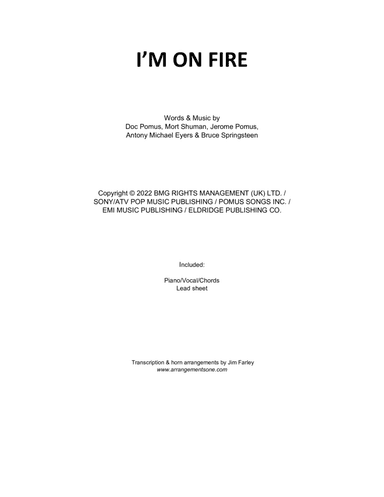 bruce springsteen, mort shuman, doc pomus, jerome pomus, antony michael eyers, 5000 volts, jim farley www.arrangementsone.com