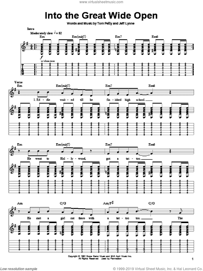 Digital sheet music for guitar (tablature, play-along)NOTE: tablature included, lyrics may be included, Play-Along version (please, check the first page above before to buy this item to see what's included)Publisher: Hal LeonardContributors to this music title:Jeff Lynne (writer)Tom Petty (writer)This item includes: PDF (digital sheet music to download and print)Instrumentation:guitar (tablature, play-along)Skill Level:intermediateGenre:pop, rockPages:6