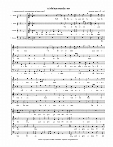 Digital Sheet Music for Iste sanctus pro lege by , Agostino Masera scored for SATB Choir; id:351017