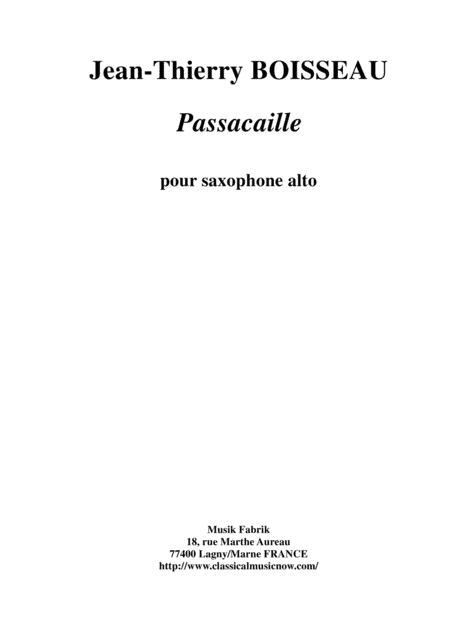 Jean-Thierry Boisseau: Passacaille for solo alto saxophone
