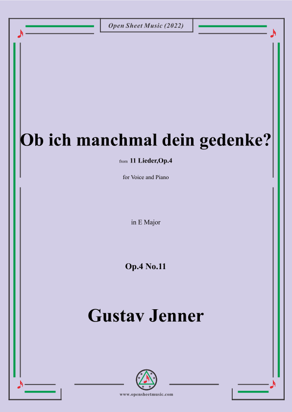 Jenner-Ob ich manchmal dein gedenke?,in E Major,Op.4 No.11 (arr. OSM Press)
