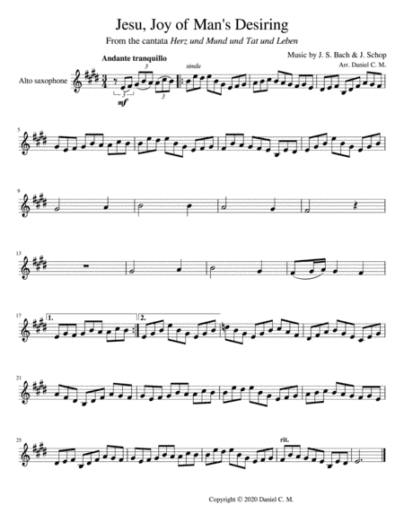 Jesu, Joy of Man's Desiring (alto sax and piano) (arr. Daniel C. M.)