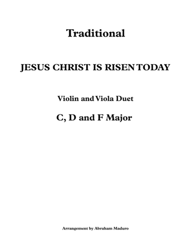 Instrumental Duet Instrumental Duet,Viola,Violin - Level 2 - Digital Download SKU: A0.715596 Composed by Traditional. Arranged by Abraham Maduro. Classical,Easter,Sacred,Spiritual,Traditional. Score and parts. 13 pages. Abraham Maduro #5223113. Published by Abraham Maduro (A0.715596). The Traditional Christian Hymn Jesus Christ Is Risen Today Violin and Viola Duet version, score and parts of 3 versions included, C, D and F Major, while the Violin has the melody most of the time the viola part is musical and interesting, special for play at Church, recitals, Easter, Lent or just for enjoy at home, Early Intermediate Level.More String arrangements https://www.sheetmusicplus.com/publishers/strings/abraham-maduro/3006638+900119 More arrangements by Abraham Maduro at:    https://www.sheetmusicplus.com/publishers/abraham-maduro/6638?aff_id=627655Contact me at [email protected] This product was created by a member of ArrangeMe, Hal Leonard's global self-publishing community of independent composers, arrangers, and songwriters. ArrangeMe allows for the publication of unique arrangements of popular titles and original compositions from a variety of voices and backgrounds. The length, difficulty, and retail pricing are determined solely by the discretion of the person who arranged or composed it. About Digital Downloads Digital Downloads are downloadable sheet music files that can be viewed directly on your computer, tablet or mobile device. Once you download your digital sheet music, you can view and print it at home, school, or anywhere you want to make music, and you don’t have to be connected to the internet. Just purchase, download and play! PLEASE NOTE: Your Digital Download will have a watermark at the bottom of each page that will include your name, purchase date and number of copies purchased. You are only authorized to print the number of copies that you have purchased. You may not digitally distribute or print more copies than purchased for use (i.e., you may not print or digitally distribute individual copies to friends or students).