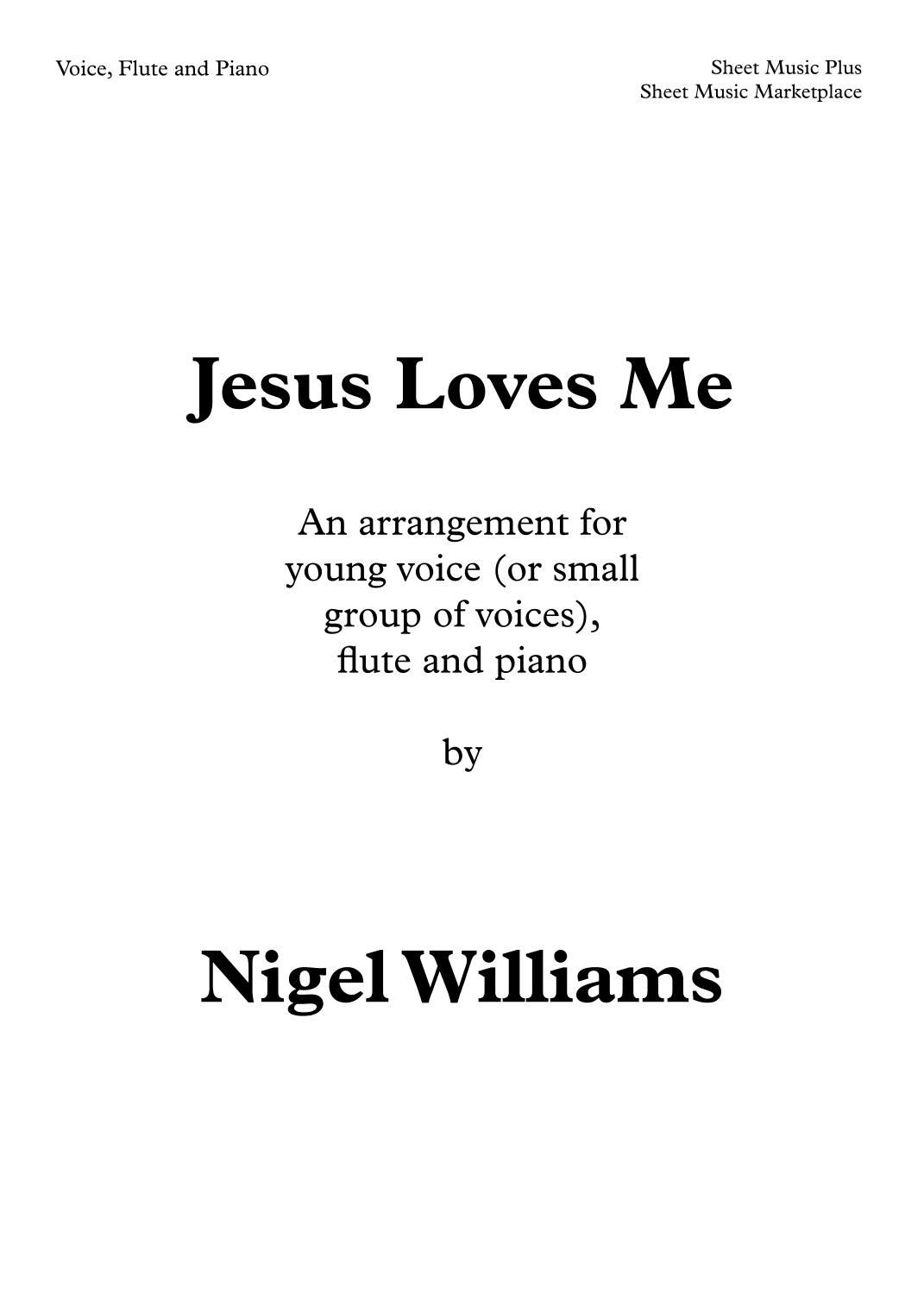 Jesus Loves Me, for Young Voices, Flute and Piano (arr. Nigel Williams)