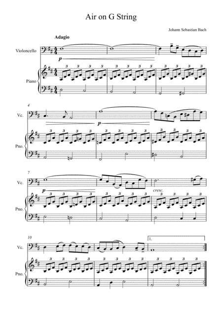 Johann Sebastian Bach - Air in G ( Piano and Violoncello Solo) (arr. André Laitano)