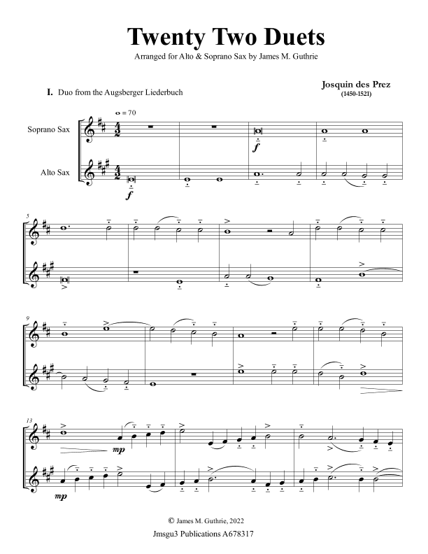 Josquin: 22 Duets for Soprano & Alto Sax (arr. James M. Guthrie)